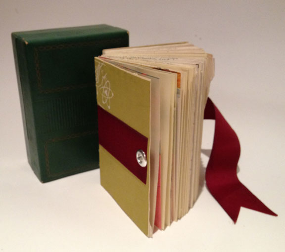 DailyDivenationsIWEB ← Previous Next → Daily Divinations. Book & Box. Uses include, but are not limited to… Reclaimed paper from Encyclopedias. Waxed linen thread, Grossgrain ribbon, Grommets, PVA. In found box. December 2011. Like Loading...